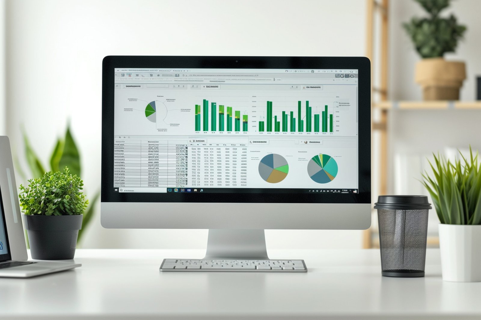 Excel project dashboard concept on all in one computer monitor, Generated AI